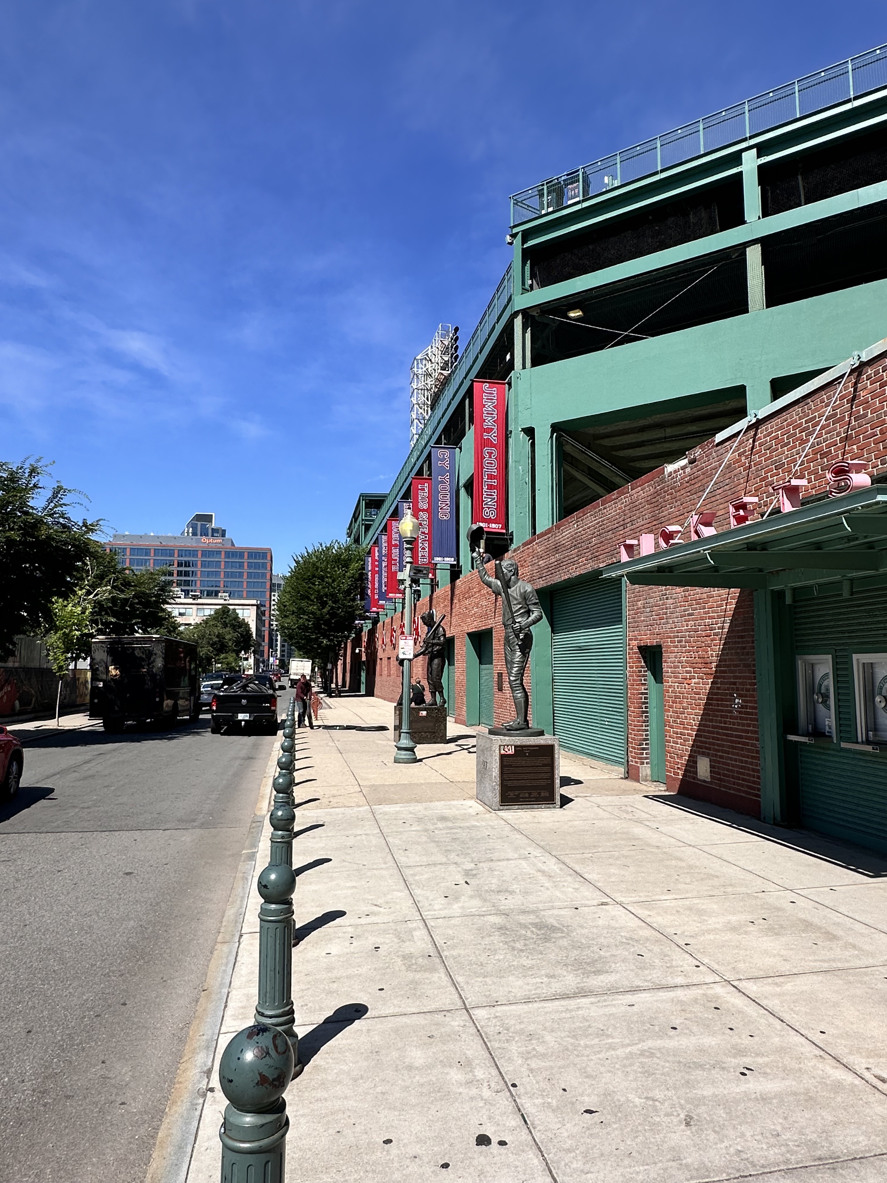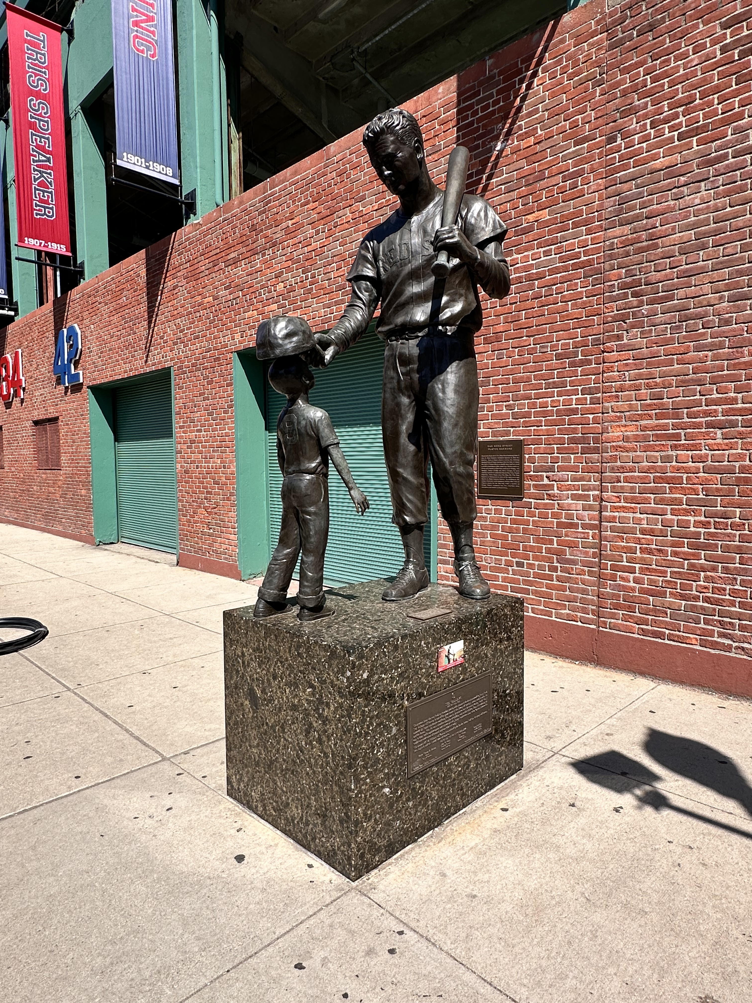 In keeping with the no-frills aesthetic of this ballpark, there were not a lot of easter eggs to find around the exterior. Some things we did see included bronze statues of Ted Williams & Cark Yastrzemski, banners recognizing great players & teams in Red Sox history, plaques to commemorate world series victories, and historic wooden seats.