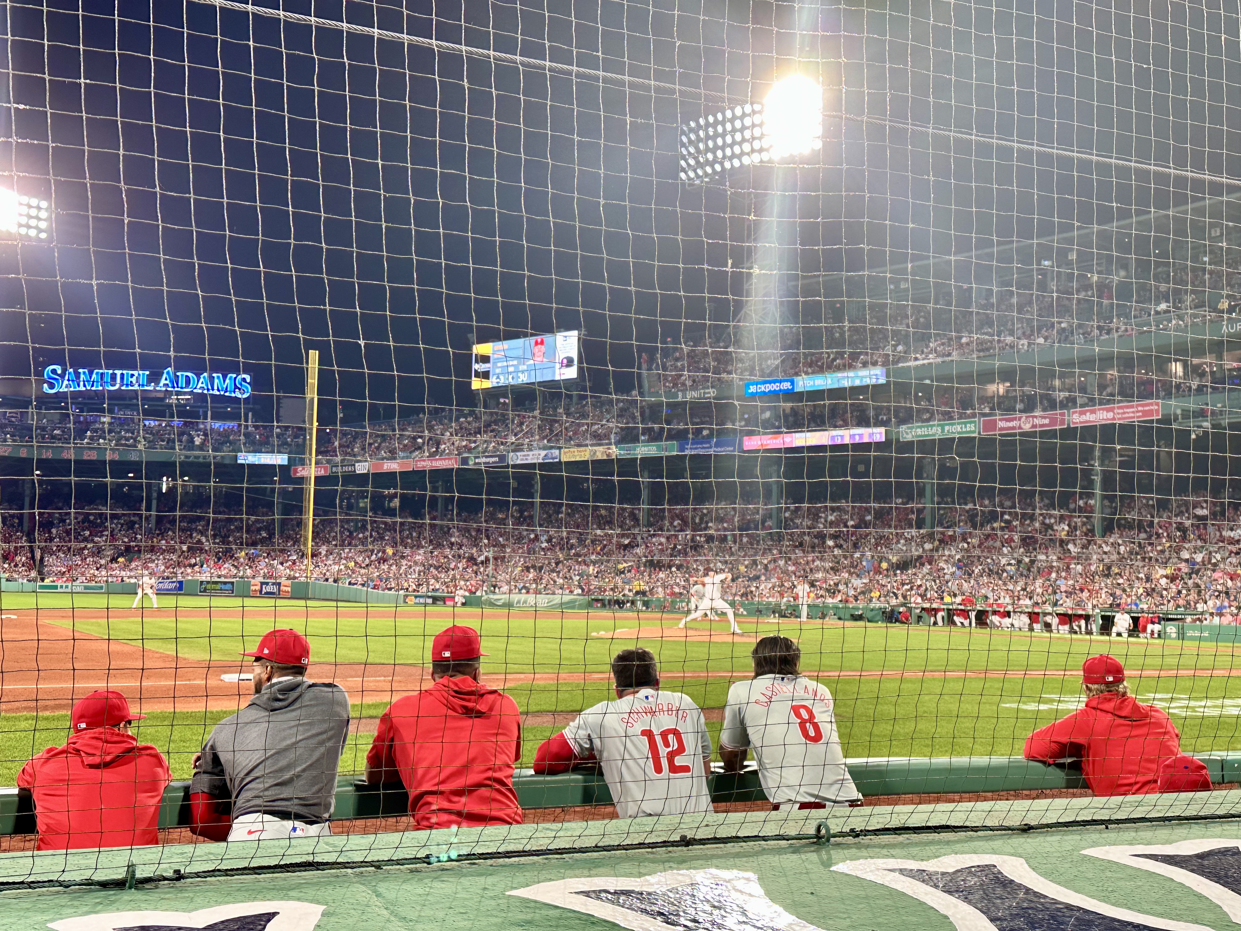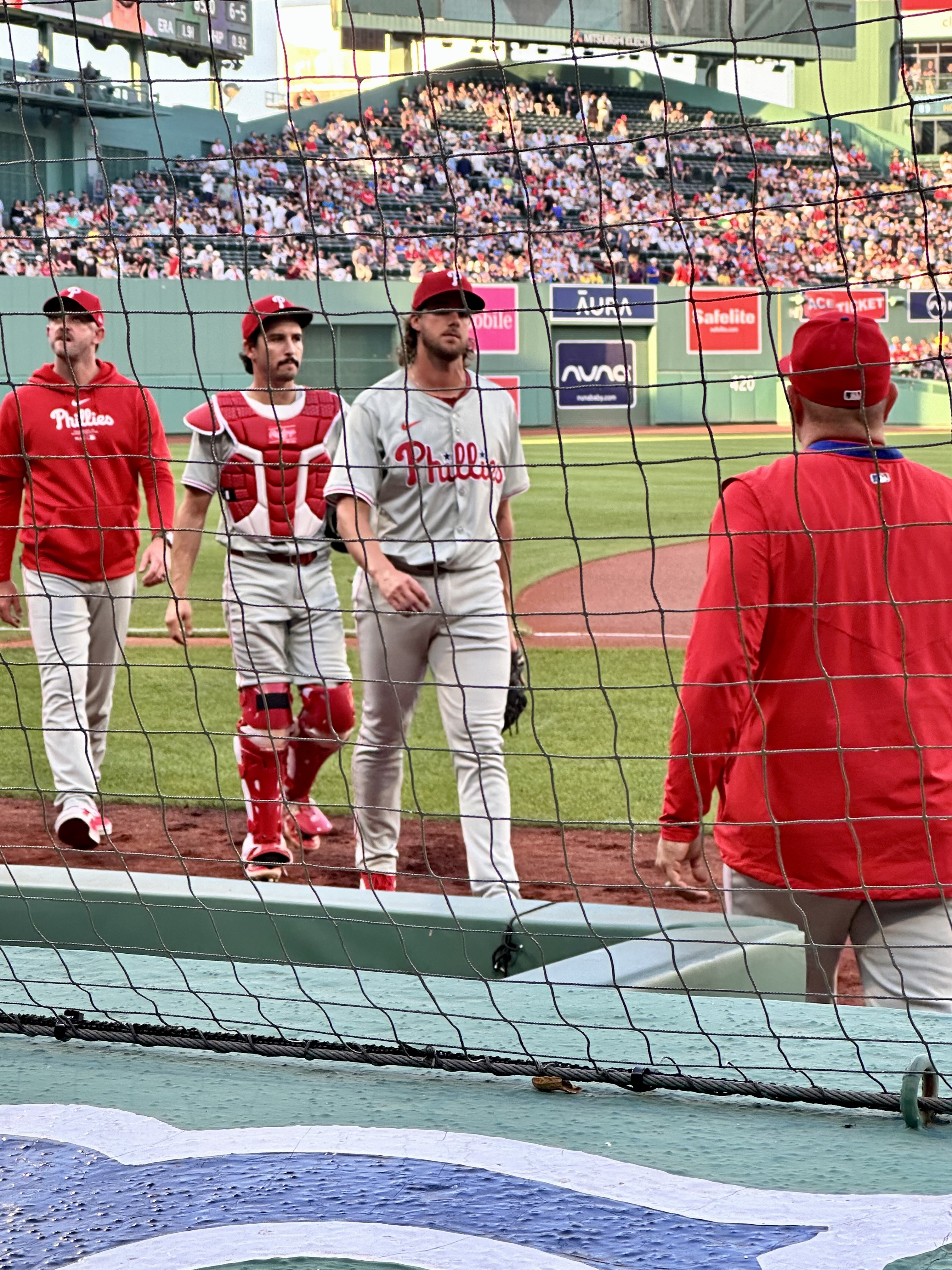Finally, we went down to our seats. These seats were a Christmas gift from our son & his girlfriend. They went all out and got us front row seats, behind the Phillies dugout. These were, by far, the best seats we have ever had. We were so close that we could literally hear the players conversations.