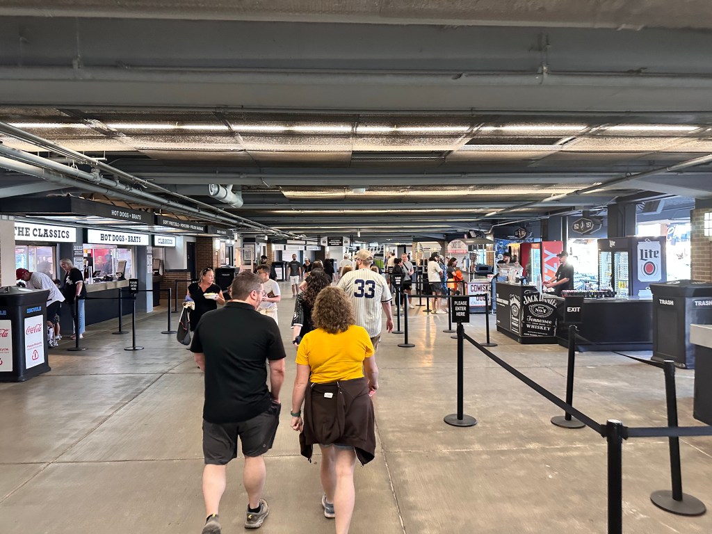 Entering this park was a bit odd. After entering the gate, we expected to enter the main concourse like all the other ballparks we’ve been to. However, the main concourse here is a level above the street. After a brief moment of confusion, we found the escalator and made our way up to the main concourse.