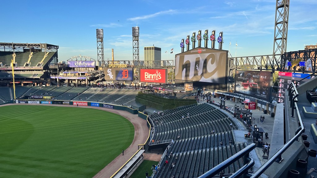 The fans we interacted with were cool. We chatted with a few people around us. Granted, we didn’t pose a threat as Phillies fans watching a Tigers – White Sox game. We did see some friendly banter back-and-forth between Tigers & White Sox fans, but nothing out of hand. Towards the end of the game there was some commotion when some fans tried to hold up a “sell the team” banner. Security took it from them pretty forcefully.