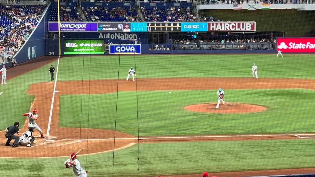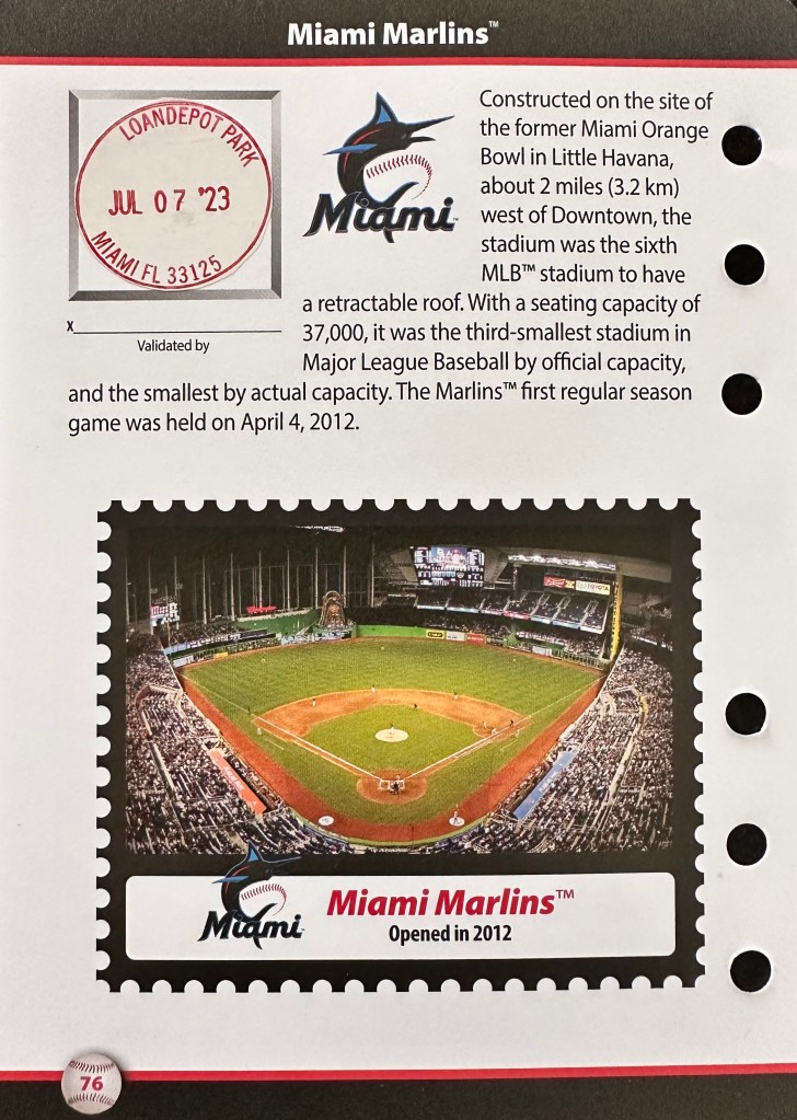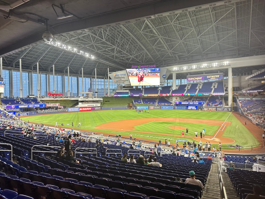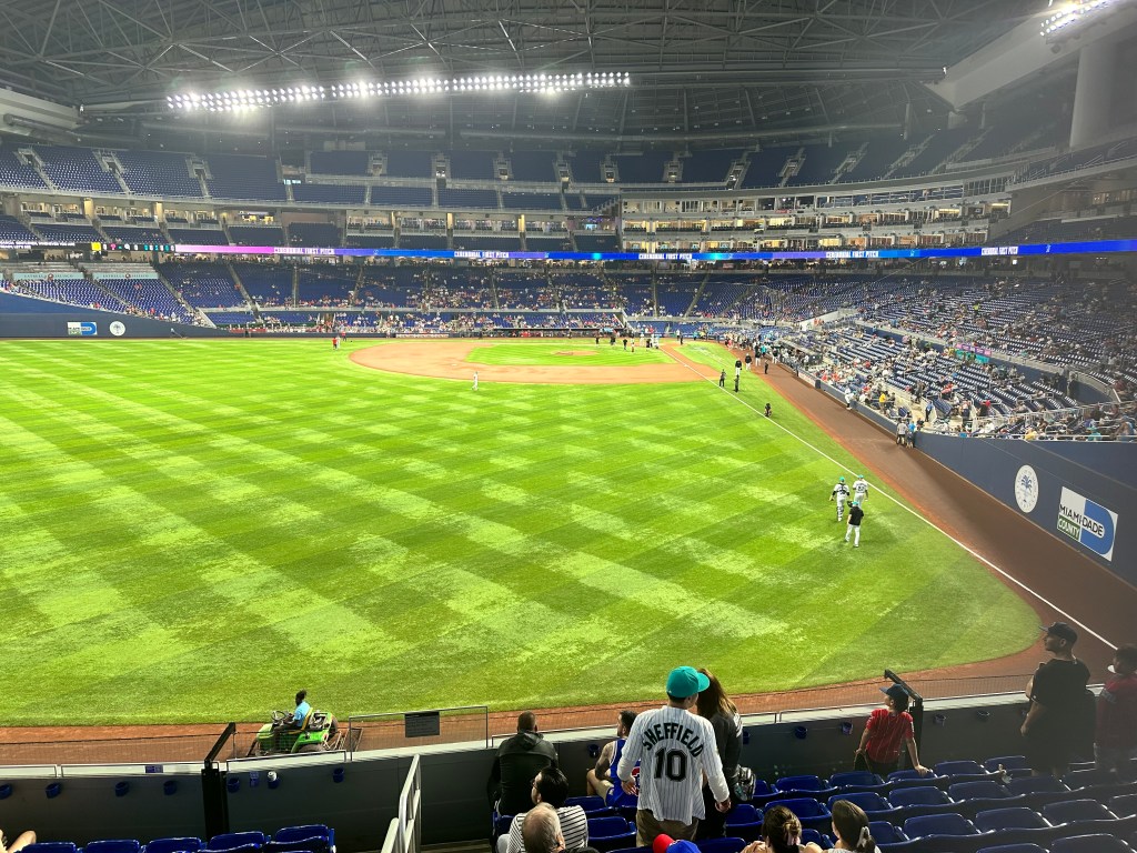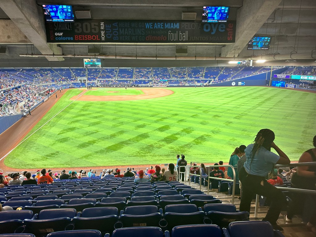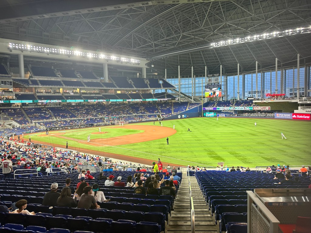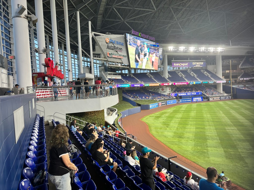 This game was a meaningful division rivalry. Both the Marlins & the Phillies were in contention at this point in the season. The crowd that was there was really into the game. However, it was a small home crowd that was clearly outnumbered by Phillies fans. In fact, the stadium was at its loudest when the Phillies Cristian Pache hit a go-ahead game winning home run in the top of the 9th inning. I don’t say this as an insult to Marlins fans…the ones that were there were really into it and cheered loud for their team. It’s just a shame that they can’t pack the stadium out…it would create such a better vibe. Our interactions with fans and staff were excellent. Everyone we interacted with was friendly and helpful.