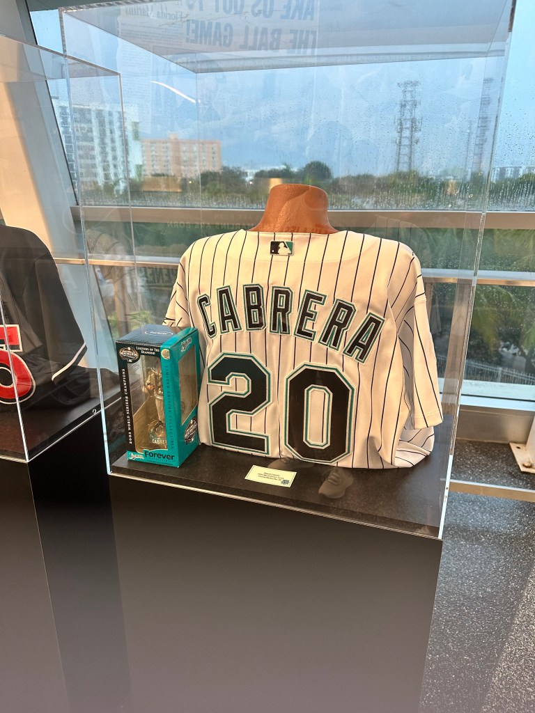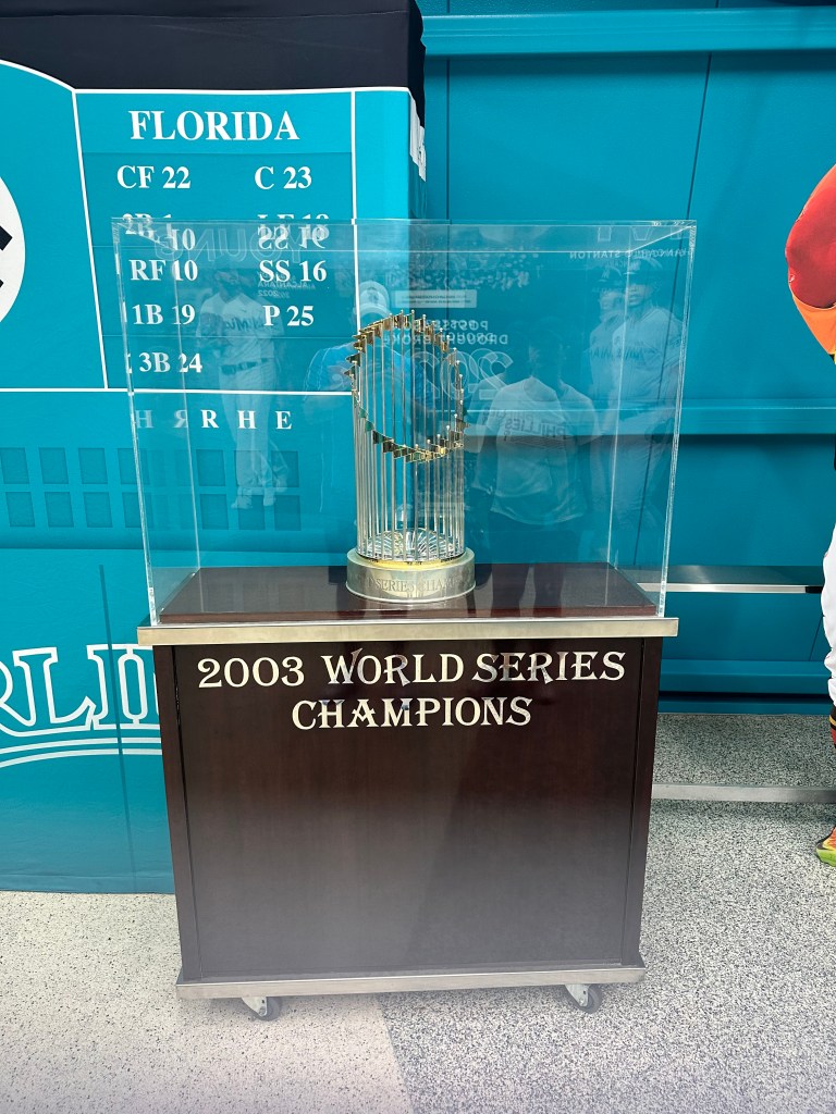 First, we saw the Marlins Hall of Fame just off the main concourse in the left field corner. This area had tons of Marlins memorabilia including game-worn jerseys from momentous occasions, and the Marlins 1997 & 2003 World Series Trophies.